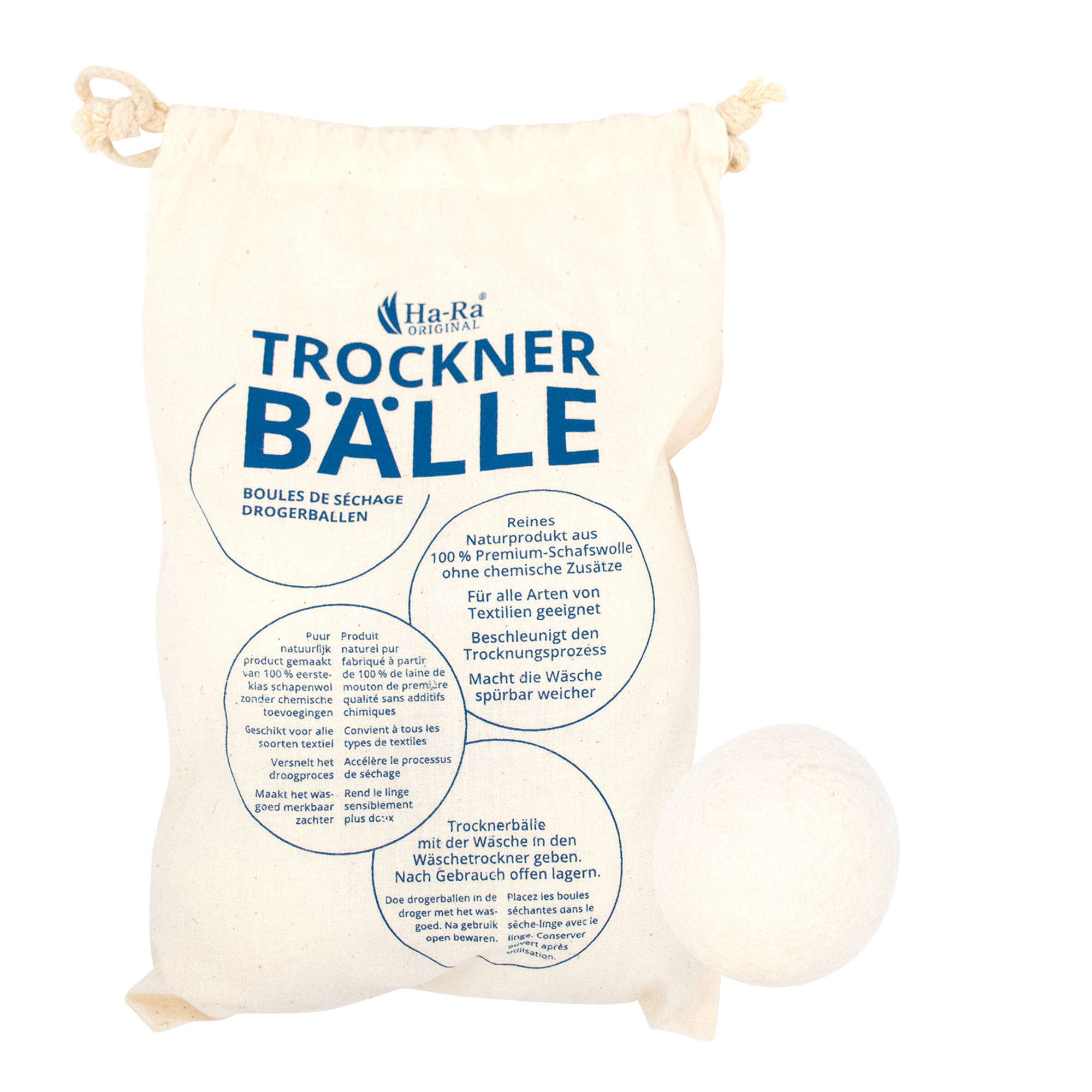 Les balles de séchage Ha-Ra 100 % laine de mouton premium pour un séchage plus efficace.